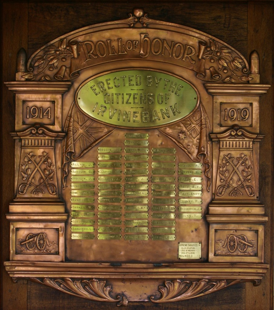 Names listed on the Irvinebank Roll of Honour.